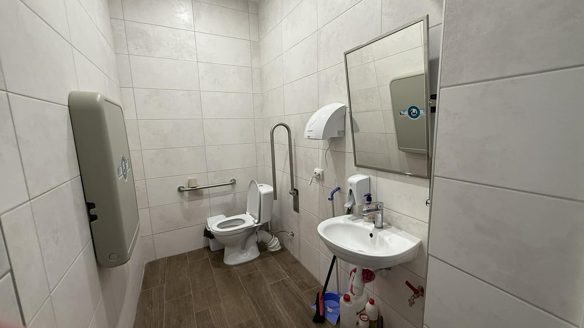 Окрему увагу приділено санітарно-гігієнічним умовам. Проведено ремонт санвузла з повною адаптацією для людей з інвалідністю: розширено вхід до 90 см, встановлено стаціонарні та відкидні поручні, спеціально облаштований унітаз і умивальник.